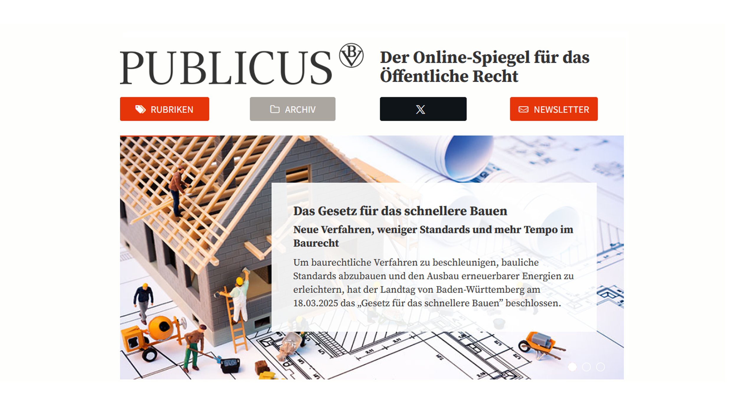 Der Online-Spiegel für das Öffentliche Recht“. Diese Plattform wendet sich an Entscheidungs- und Funktionsträger in den Verwaltungen von Bund, Ländern und Gemeinden, öffentlichen Unternehmen und Institutionen.