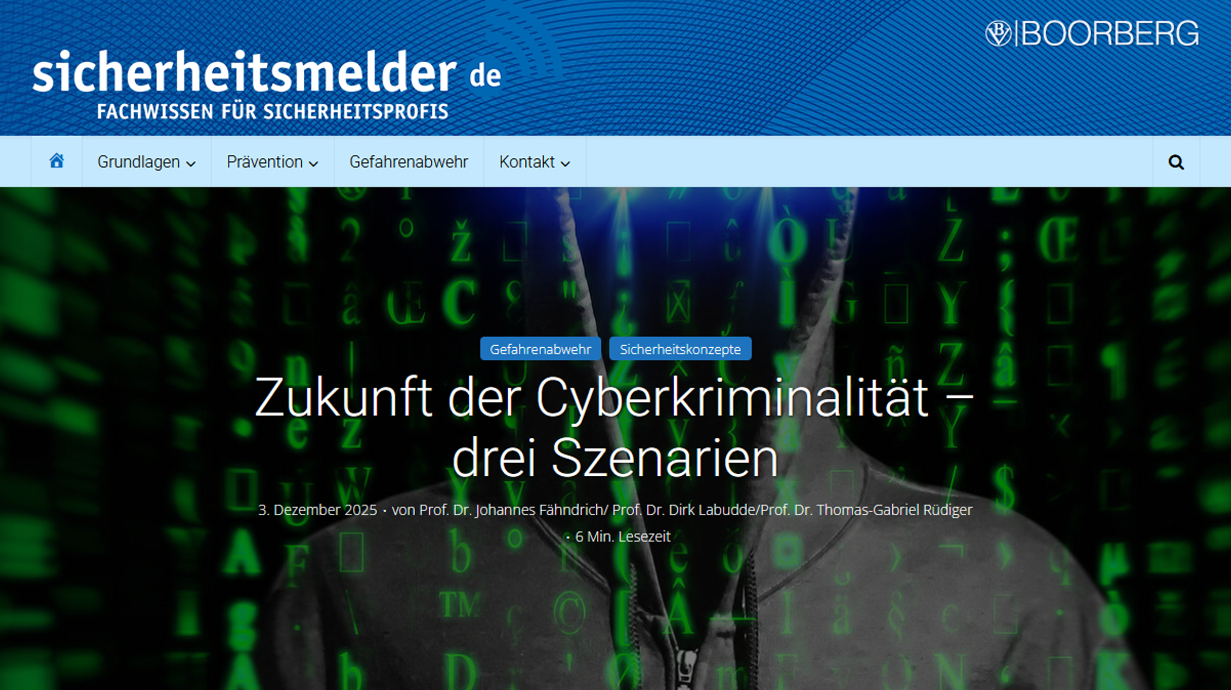 Der "Sicherheitsmelder" ist ein Onlineportal für die gesamte Sicherheitsbranche. Er erscheint im Richard Boorberg Verlag GmbH & Co KG und wird herausgegeben von Florian Haacke, Leiter der Konzernsicherheit der Dr. Ing. h.c. F. Porsche Aktiengesellschaft, Stuttgart.